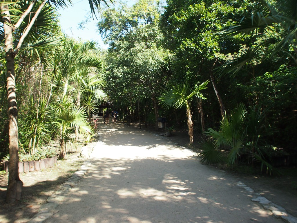 进城得走侧门。去侧门要通过一段丛林中的小路,据说是按玛雅古法修建的。玛雅的路我感觉挺奇怪的,他们的文明属于石器时代,不懂得使用轮子,也没有牲口,但路修得倒是高大上。最有名的一条路有一百公里长,连接两座著名的玛雅城市coba和Chichen Itza,两米高,四米宽,那简直就是当年的高速公路阿,也不知道用来走什么。难道是外星人飞碟降落的跑道?