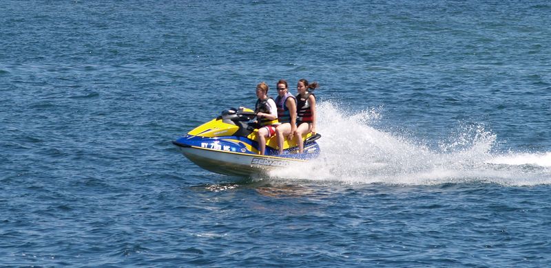 这位gg带着仨mm,还招手,显然是炫耀嘛。当然也有可能是专门开船的,明显比别人晒得黑嘛,呵呵。开太快没拍到全。